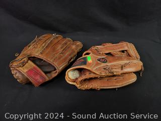 Lot #0222: 5 Baseball Mitts & 4 Bats