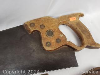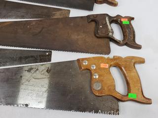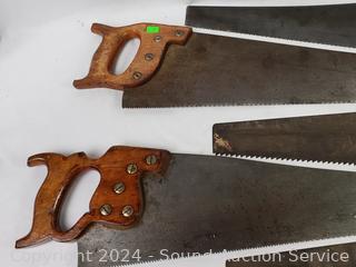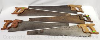 3 Disston, 1 Atkins & other. Approx. 23" to 26" blades.