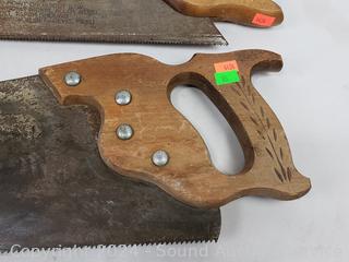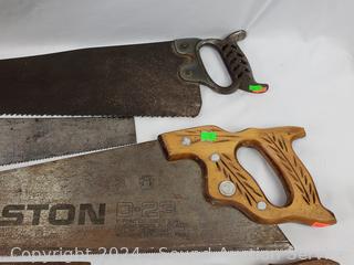 2 Atkins, Disston & other. Approx. 26" to 30".