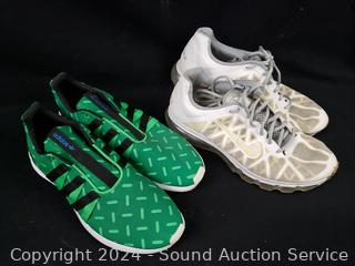 Various sizes. Adidas = S:11, S:10.5, S:9.5, Nike = AirMax S:15, S:9.5, S:14. Signs of wear from use.