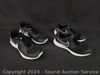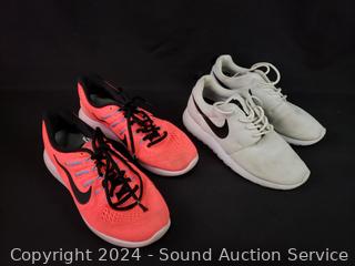 Nike Star Runner S:3Y, Nike S:6Y, Merrell Coral S:8.5, Nike Training S:7.5, Niek Runner S:8.5, Champion S:9, Nike Sample S:7, Nike 4Y. Signs of wear from use.