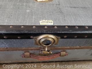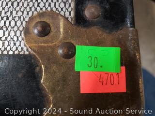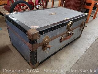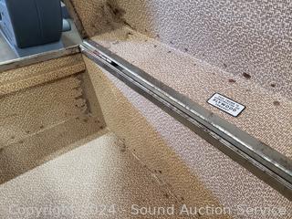 Refer to photos for lot contents. Leather handles, missing locking mechanism. Various scuffs, wear to finish. 12" x 30" x 16".