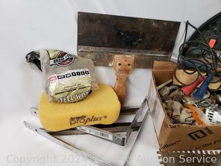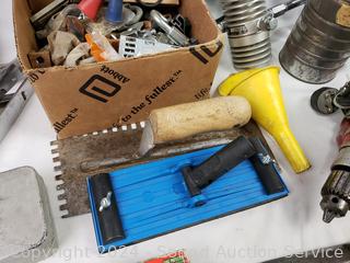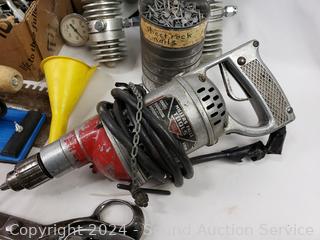 Lot #0136: Drill, Hardware, Scissors, Mirror etc.