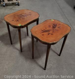 Lot #0004: Pair of Vintage Inlaid Side Tables