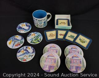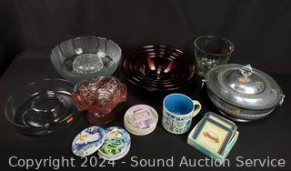 Lot #0055: Pyrex Mixing Bowl Set, Coasters & More