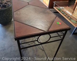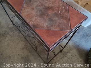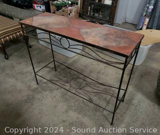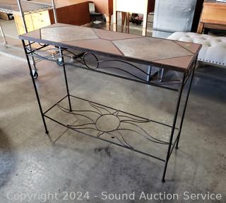 Lot #0018: Wrought Iron Tile Top Hall Table