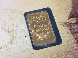 Lot #0056: (2) 0.1g Gold & Graded 1/1000oz .99 Gold Wyoming Goldback Note