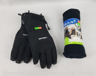 Lot #0168: 2 Bula Fleece Face/Neck Warmers & 1 Pair Head Touchscreen Gloves
