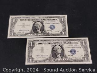 Lot #0134: 2 Uncirculated 1957 Sequential Serial Silver Certificates