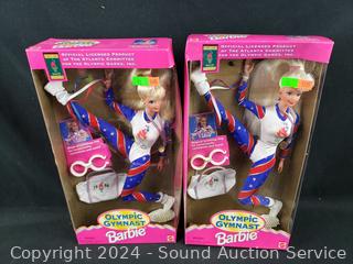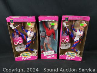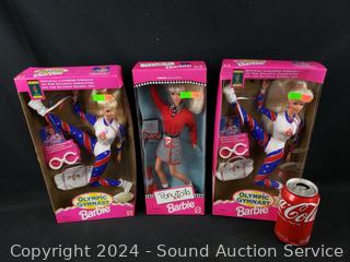 2 Barbie Gymnast c.1995, 1 Barbie Ponytails c.1997. All sealed in original packaging, Gymnast plastic has some bends, creases.