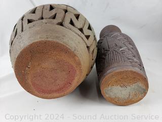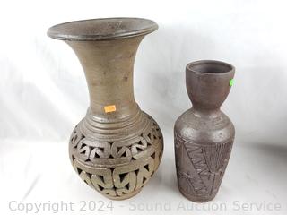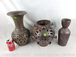 Lot #0043: 3 Pottery Pierced Vases/Candle Lamps