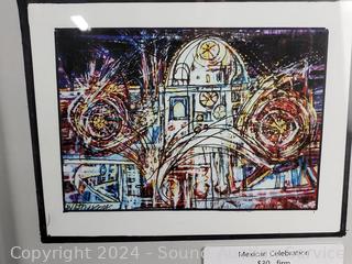 "A Changing Universe" 16.5" x 14", "Mother & Child" 16" x 14", "Mexican Celebration" 13" x 11". All appear to be prints painted over with acrylic.