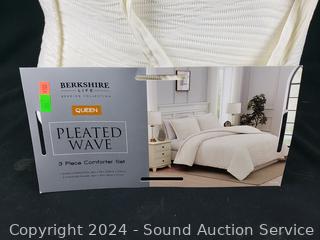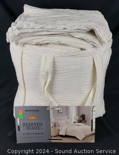 Lot #0288: 3pc Pleated Weave Ivory Queen Comforter Set