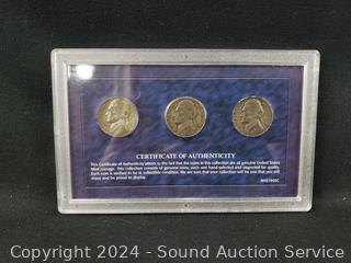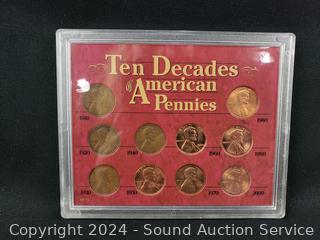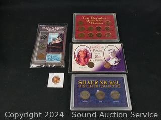 1943-45 Silver Nickel Mint Mark Collection, First & Last Pennies of the 20th Century, Pearl Harbor Tribute Coins & Stamp Set, 10 Decades of American Pennies Set. ATTN: We are not coin or currency experts or graders, please use your own judgement when bidding.