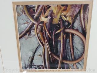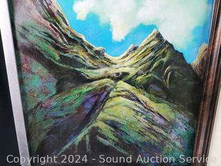 "Sunlight on the Pond" print 12" x 12", "Beach Attraction" painting, 16.5" x 16.5", "A Walk in our Future" Paint & Colored Pencil 14" x 14", "Our Climb" Acrylic on Paper 15.5" x 18.5". Dale Witherow is a local artist with several awards and grants. His art has been exhibited on the east coast mid-Atlantic region Texas, New Mexico, Mexico, and more recently in up to 14 West Coast Galleries. His Works display his love for color, design & hidden symbolism. "Painting for me is an exploration of the work, self, color design memory, emotion and the light and dark of all things" - Dale Witherow.