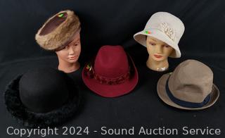 Da.Me Italy Black/Faux Fur, 21 Men S:M/L Fedora, Lancaster Red Wool, Genuine Fur Chicago, Ivory Knitted. Don't see any major issues.