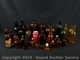 Lot #0092: Assorted Brown Glass Apothecary & Other Bottles