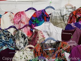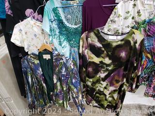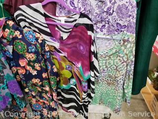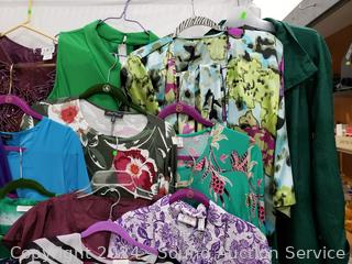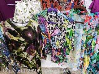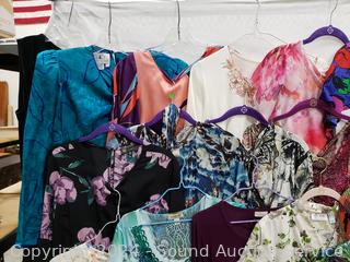 Appear to be mostly medium. Some brands include Adam Douglass, Slinky Brand, Alberto Makali, Attitudes, Calvin Klein, Kate & Mallory, D & Co., Oneworld, Logo, Susan Graver, Dennis Basso & more. All appear to be in great condition, refer to photos for more details.