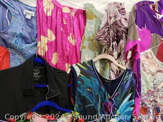 Various sizes, 4, 6, S, 2, possibly more. Some brands include Chico's, Sag Harbor, Maggie Sweet, Slinky Brand, Liberty, Jaclyn Smith, Lysse, Charlotte Ford, Fila & More. All appear to be in great condition. Refer to photos for more details.