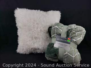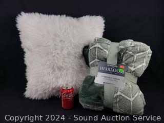 Lot #0189: Berkshire Life Heirloom Oversized Throw & White Faux Fur Throw Pillow