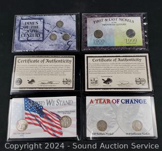 1920 Standing Liberty Silver Quarter, 2001 NY State Quarter, "A Year of Change" 1938 Jefferson Nickel 1938 Buffalo Nickel, "First & Last 20th Century Nickels" 1900 Liberty Nickel, 199 Jefferson Nickel, "Dimes of the 20th Century" Mercury, Roosevelt, Barber dimes. ATTN: We are not coin or currency experts or graders, please use your own judgement when bidding.