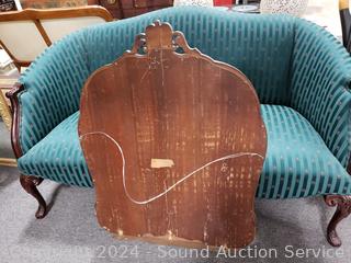 39.5" H x 30" W. Olde patina finish. Don't see any major issues.