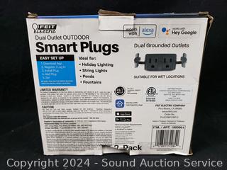 Lot #0186: 2pk Feit Dual Outlet Smart Wifi Outdoor Plugs