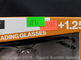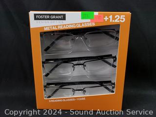 Lot #0271: 3 Foster Grant Metal +1.25 Reading Glasses w/1 Case