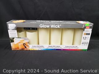 Lot #0255: 6pk Glow Wick LED/RGB Wax Candles w/Remote