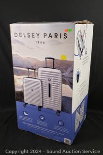 Lot #0302: Delsey Paris Silver Hard-Side Spinner Luggage Set