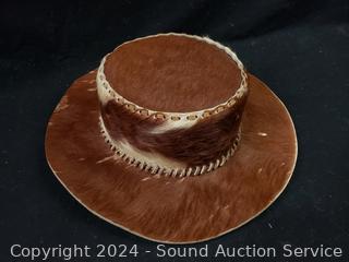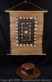 Lot #0140: Woven Polynesian Artwork & Handmade Hawaii Cowhide Hat