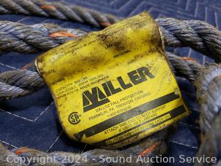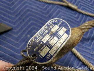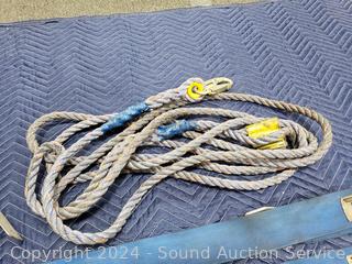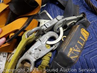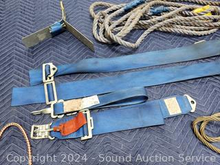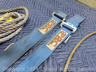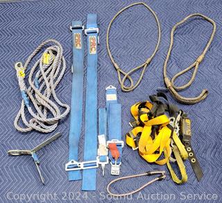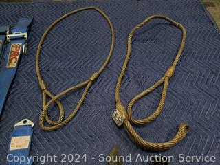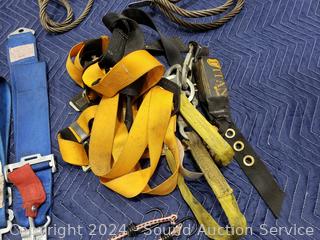 Lot #0065: (2) 6' x 1/2" & 5/8" Braided Cables, 25ft Rope, Lanyard & Titan Harness, Straps