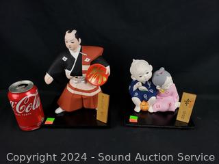 Lot #0114: 2 Japanese Pottery Hand Painted Figures