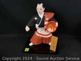 Warrior is missing the Katana, other is missing something that goes in hand (umbrella/fishing pole). Approx. 6.5" to 9.5" tall.