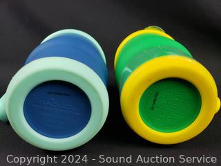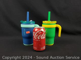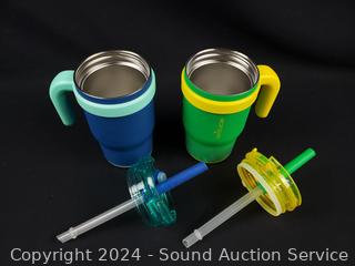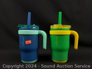 Lot #0237: 2 Reduce 14oz Blue/Yellow/Green Travel Mugs w/Straws
