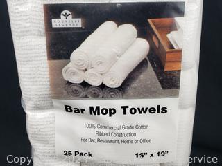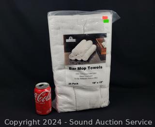 Lot #0227: 25pk White Cotton Bar Mop 16" x 19" Towels