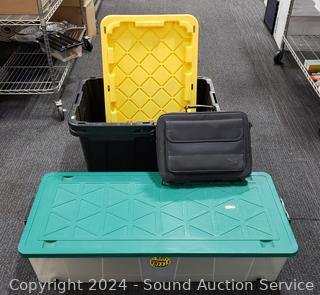 Lot #0033: 3 Totes w/Lids & Laptop Bag