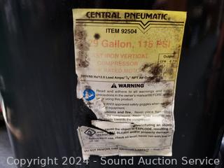 Lot #0015: Central Pneumatic 29-Gal 115 PSI 20A 250V Air Compressor