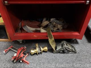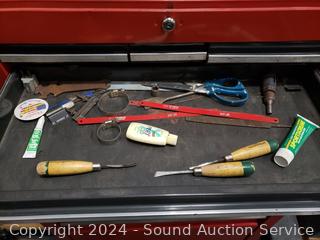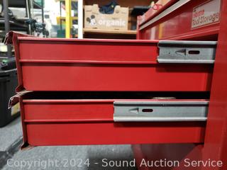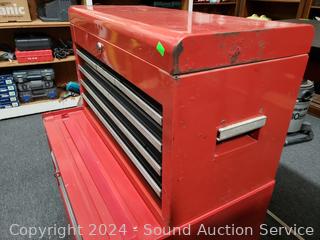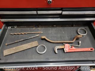 Comes with a few tools, refer to photos for contents. Various wear from use. 43' H x 26.5" W x 12" to 18" D.