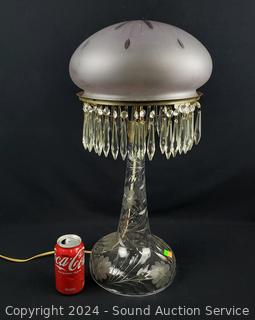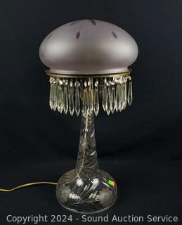 Lot #0099: Cut Crystal 23" Table Lamp w/Crystal Prisms