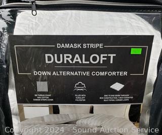 Lot #0184:     Duraloft Damask Stripe Down Alternative King Comforter