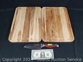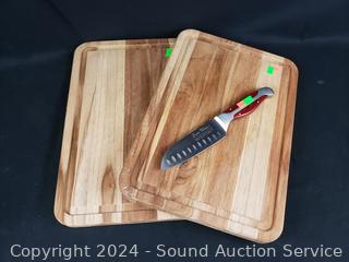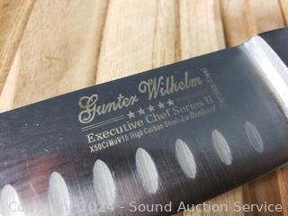 Lot #0214: Gunter Wilhelm Chef Knife & 2 Wood 14.5" x 10" Cutting Boards