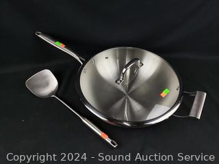 Lot #0218: Miu Premium Triclad Stainless 13" Wok w/Lid & Spatula