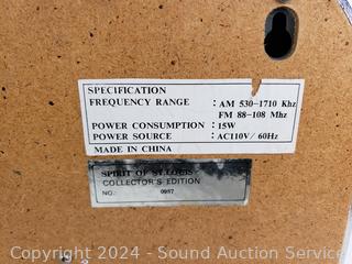 Tuner/Tape/Light on radio are working, Spirit of St. Loius Collectors Edition Radio, Pepsi clock appears to be functioning as intended, small Russian clock is untested, no key.