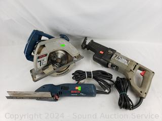 Lot #0059: Ryobi 7-1/4" Circular Saw, Porter Cable Reciprocating Saw, Bosch Jamb Saw