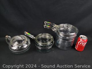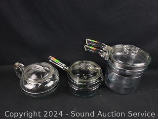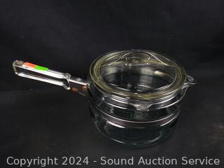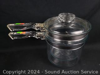 Lot #0117: Vintage Pyrex Clear Glass, Kettle, Double Boiler & Kettle