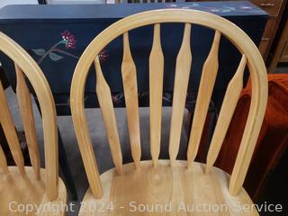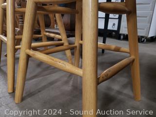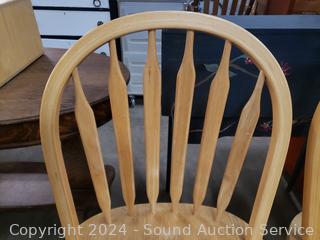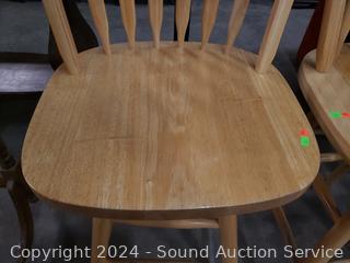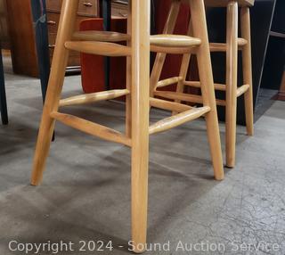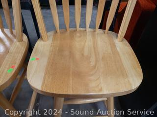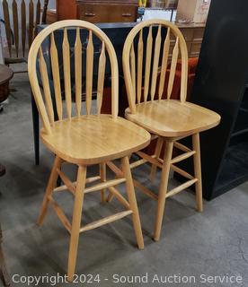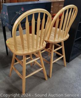 Lot #0019: 2 Blonde Wood Counter Height Swivel Chairs