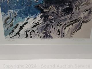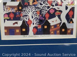 Rubbing 8" x 18", Signed Yiuping Limited #880/5000 "The Lantern Festival", 10" x 10". Vallarreal signed "Shifting", limited #1143/5000, 13.5" x 13.5".