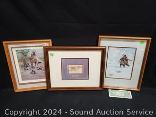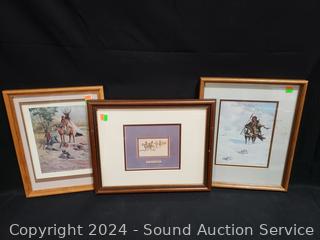 Fred Oldfield Limited #575/1000 print, 11" x 14". Richard Luer print, 12.5" x 15". "Pony Tracks in the Buffalo Trail" print 16" x 13". Refer to photos for more details.