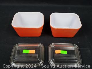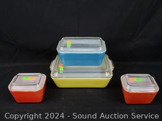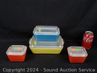 Lot #0169: 4pc Colorful Pyrex Glass Refrigerator Containers w/Lids